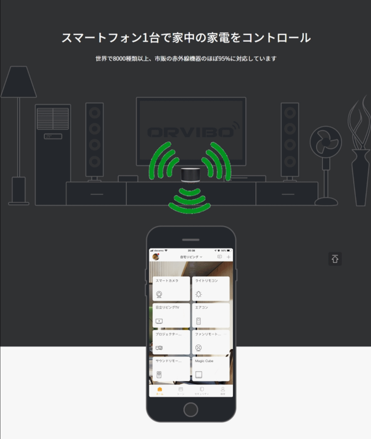 \あなたのスマホがリモコンになる!?/ 2017年11月発売の大人気スマートリモコン MagicCubeの機能集約モデルが登場! <スマート家電リモコン Magic Dot> リモコン探しに、 「イラッ!」 電気の消し忘れに、 「イライラッ!」 とした経験はありませんか? ▼ ▼ ▼ リモコンの悩みはコレで解決! テレビ、照明、エアコン、扇風機、ビデオなど 何個もある電化製品のリモコンを 手元のスマホで、まとめて操作! あなたのスマホがリモコンに変身します! しかも、 外出先からもリモコン操作可能! ORVIBO スマート家電リモコン MagicDot ブランド特徴 リモコンの悩みはコレで解決! 沢山あるリモコンはスマホ1台で操作可能! 外出先からリモコン操作 楽天市場で唯一のORVIBO日本公式サポート付! 商品 ORVIBO(オービボ )WiFi IRリモコン 学習リモコン マジックドット Magic Dot カラー ブラック×シルバー 対応メーカー(一部抜粋) パナソニック ソニー シャープ 東芝 サンヨー 三菱 日立 LG ダイキン サムソン パイオニア BOSE JVC JBL ケンウッド エプソン コイズミ ダイコー アイリスオーヤマ ドウシシャ タキイズミ NEC オーデリック OHM ヤマゼン…などの赤外線リモコン付き(対応)の電化製品 対応機器 テレビ エアコン 照明 ビデオ オーディオ 扇風機 プロジェクター…など、赤外線リモコンで操作可能な電化製品 仕様 ・Wi-Fi規格 : IEEE802.11 b/g/n(2.4Ghz帯) ※接続は2.4Ghz帯のみなり、5Gは接続出来ません。